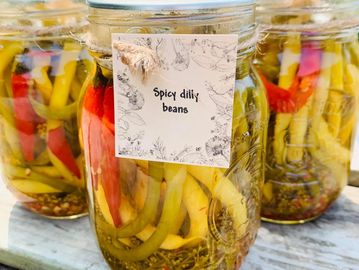 Handcrafted with our homegrown organic beans, garlic, dill and chilies.