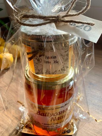 Each gift pack includes. 1/125 ml dandelion honey jelly and 1/500g local wild flower honey.